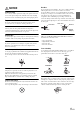 In Case of Difficulty If you encounter a problem, please turn the power off, then on again. If the unit is still not functioning normally, please review the items in the following checklist. This guide will help you isolate the problem if the unit is at fault. Otherwise, make sure the rest of your system is properly connected, or then consult your authorized Alpine dealer. Basic No function or display. • Vehicle’s ignition is off.