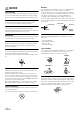 NOTICE Product Cleaning Use a soft dry cloth for periodic cleaning of the product. For more severe stains, please dampen the cloth with water only. Anything else has the chance of dissolving the paint or damaging the plastic. Temperature Be sure the temperature inside the vehicle is between +45°C (+113°F) and 0°C (+32°F) before turning your unit on. New Discs To prevent the disc from jamming, “Disc error” is displayed if discs with irregular surfaces are inserted or if discs are inserted incorrectly.