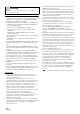 CAUTION This symbol means important instructions. Failure to heed them can result in injury or material property damage. • Depending on the connected USB flash drive, the unit may not function or some functions may not be performed. • The audio file format that can be played back on the unit is MP3/WMA/AAC/FLAC. • Artist/song name, etc., can be displayed. Certain, special characters may not be correctly displayed. HALT USE IMMEDIATELY IF A PROBLEM APPEARS.