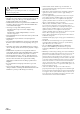 In Case of Difficulty If you encounter a problem, please turn the power off, then on again. If the unit is still not functioning normally, please review the items in the following checklist. This guide will help you isolate the problem if the unit is at fault. Otherwise, make sure the rest of your system is properly connected, or then consult your authorized Alpine dealer. Basic No function or display. • Vehicle’s ignition is off.