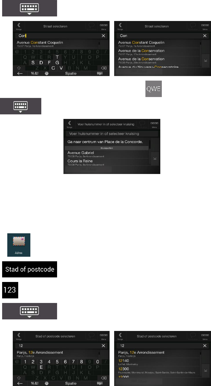 3.1.2.5 Met behulp van de postcode een bestemming selecteren