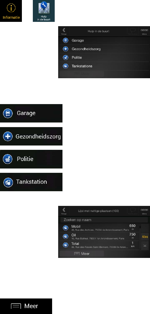 Plaatsen in de volgende vooraf ingestelde zoekcategorieën kunnen worden gezocht in de buurt