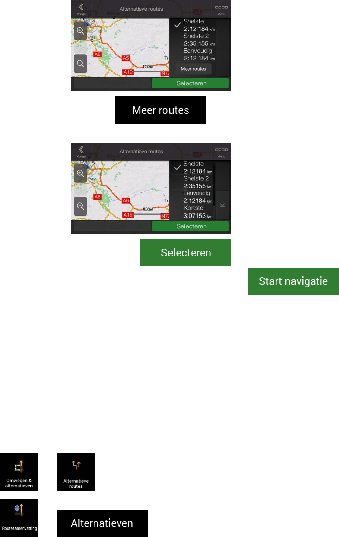 2. U kunt de lijst met alternatieve routes in het navigatiemenu op een van de volgende manieren