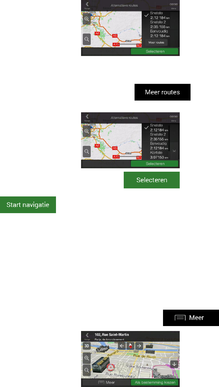 1. Kies een bestemming zoals hierboven is beschreven.Dit kan een adres zijn, een plaats, een