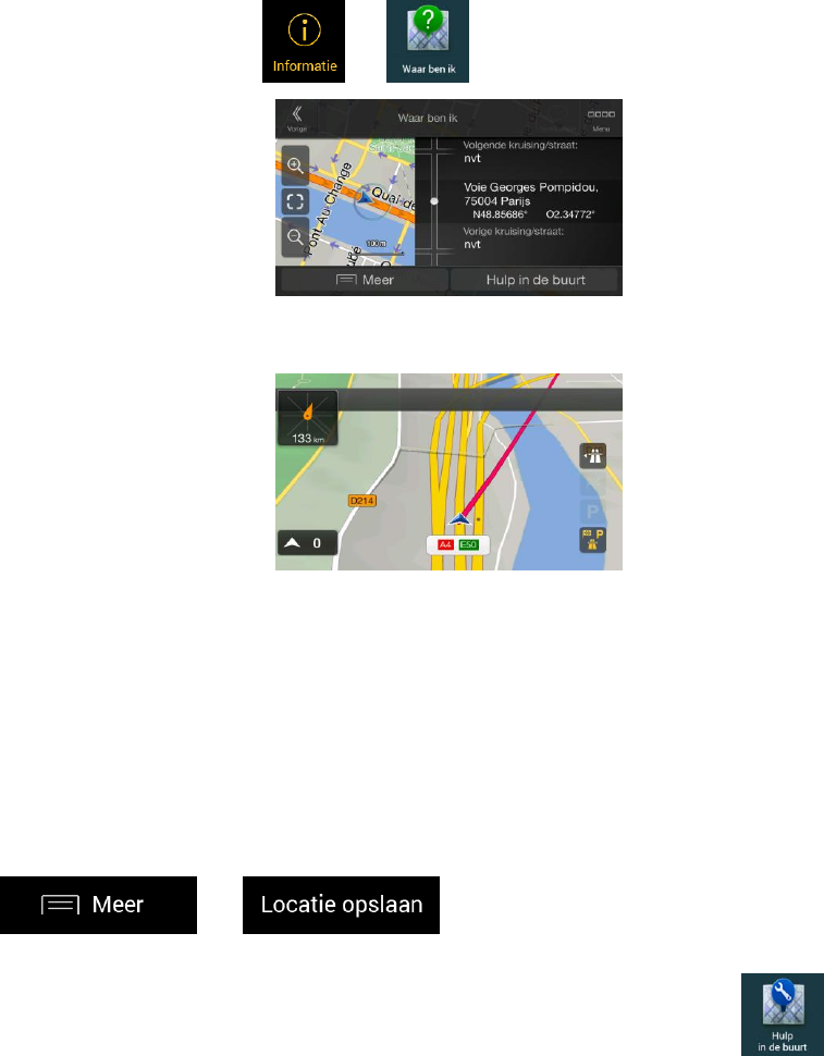 De volgende informatie wordt getoond op het scherm Waar ben ik: