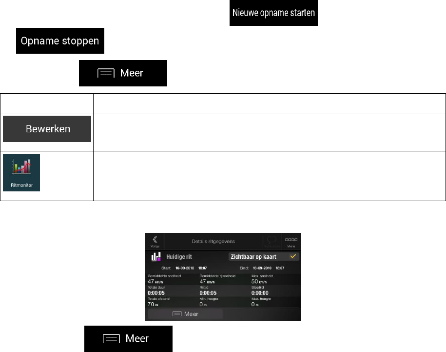U kunt een nieuwe reis registreren door te tikken op en dit stoppen door te tikken