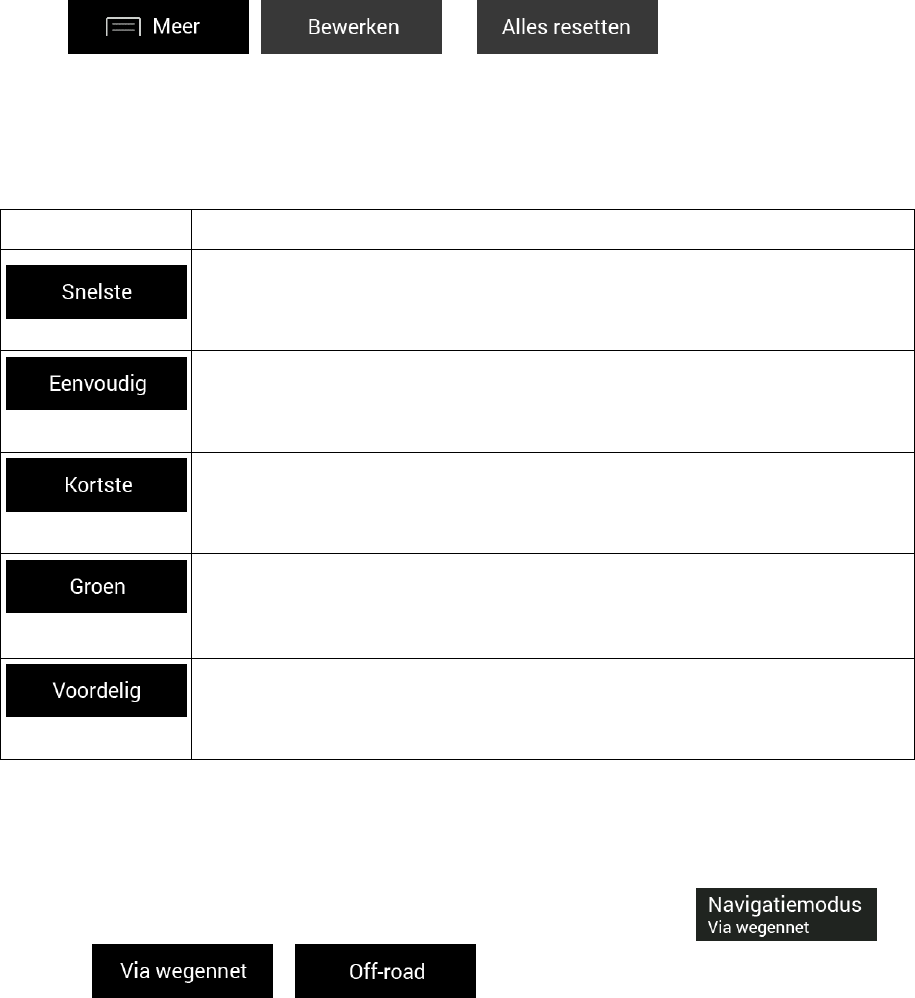 U kunt de volgende routeplanningsmethoden selecteren: