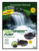 PUMP INFORMATION INSTALLATION •Only operate the pump when it has water running through it. Failure to do so will overheat the pump and cause it to fail, thus voiding the warranty. DO NOT OPERATE DRY! If you are going to use your Eco-Sphere™ pump “in-line” or “out of the water,” you must prime the pump before turning it on. Priming a pump means to feed water into the tubing both in and out of the pump, to help create a suction effect to draw the water from the source.