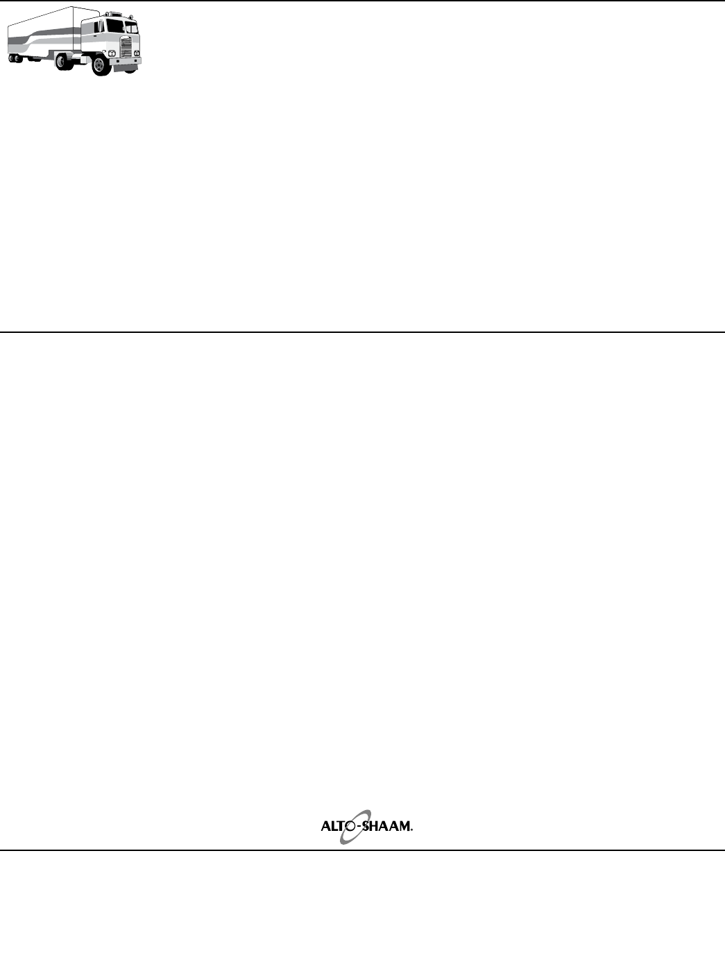 All Alto-Shaam equipment is sold F.O.B. shipping point, and when accepted by the carrier, such shipments