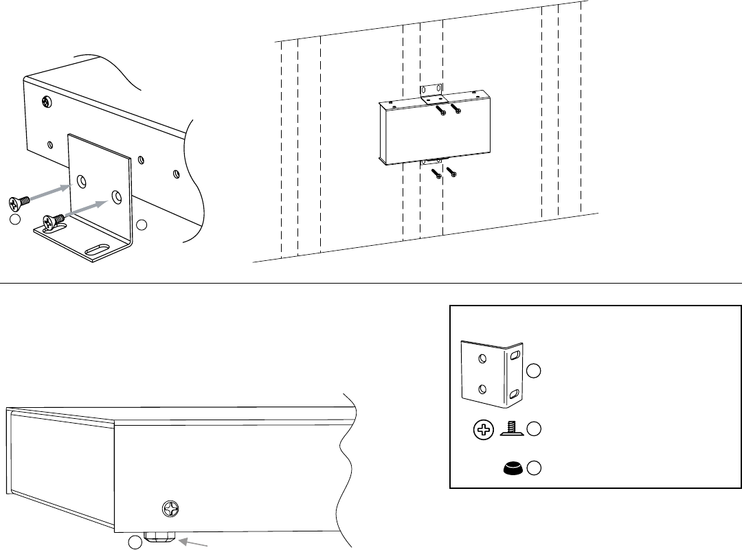 1- Install mounting brackets (A) on the left and right side of rack chassis using four (4) flat head screws (B)