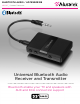 Let’s Get Digital @ aluratek.com ABC01F_ Product Datasheet Overview: Features: Aluratek’s Bluetooth Universal Audio Receiver and Transmitter is the one and only adapter you will need to add Bluetooth streaming functionality to your home entertainment system or transmit music to your Bluetooth headphones and speakers. Simply flip the switch on the unit to enable either Bluetooth Receiving or Bluetooth Transmitting • Bluetooth v4.0 (backwards compatible with v3.0, v2.1.