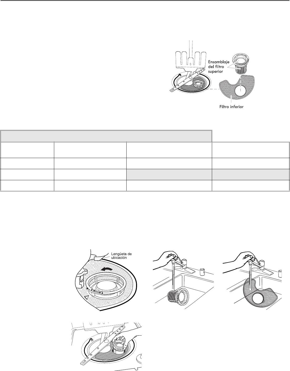 optimiza el ahorro de agua y energía mientras proporciona una limpieza superior. Durante la vida útil de su lavavajillas, el filtro necesitará