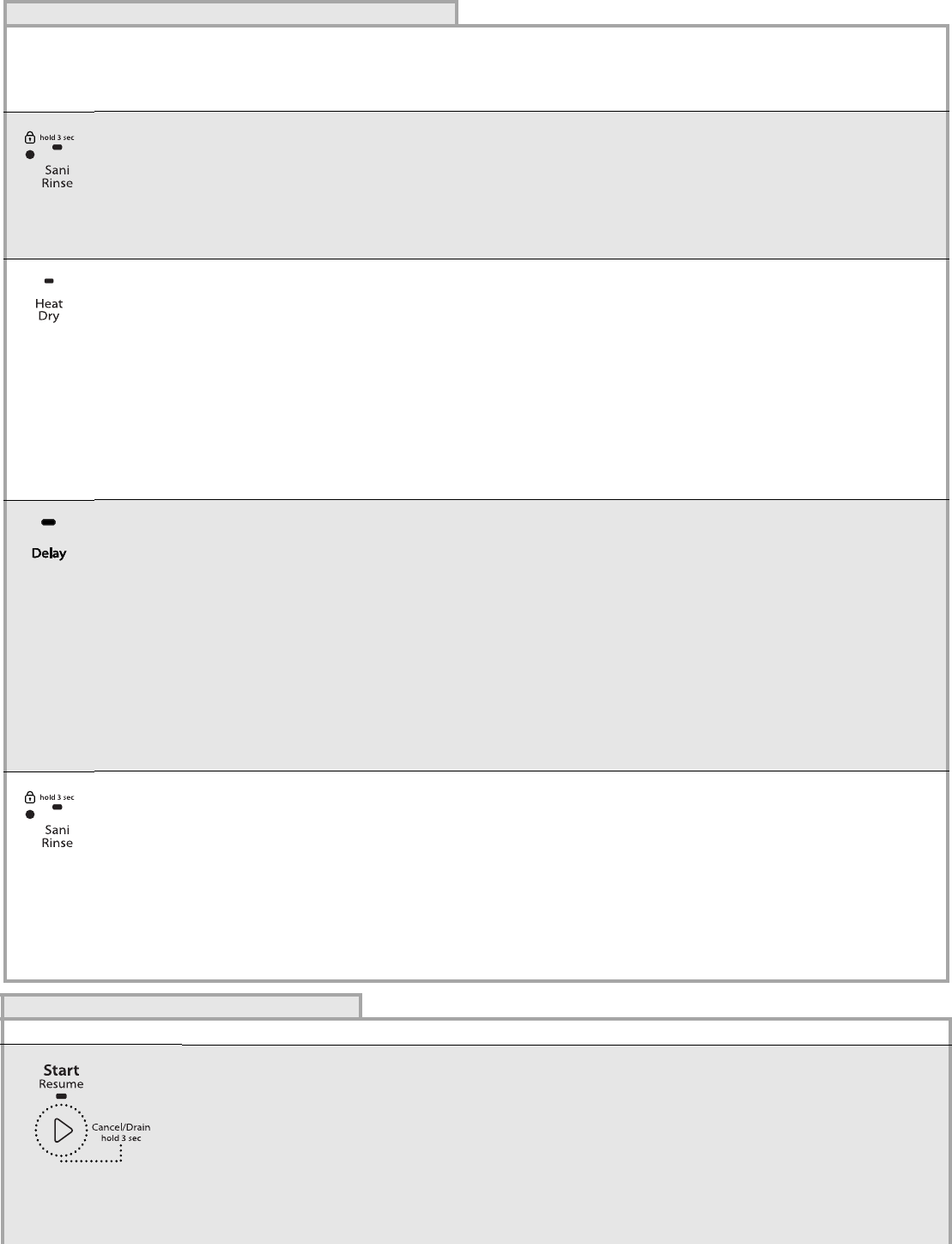 évacuer l'eau complètement. Appuyer sur START/RESUME (mise en marche/reprise) pendant 3 secondes.
