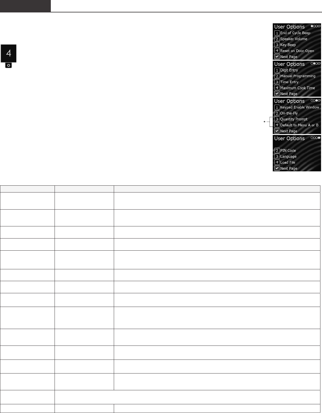* Available on select models only (only displayed in User Options menu if factory option is enabled)
