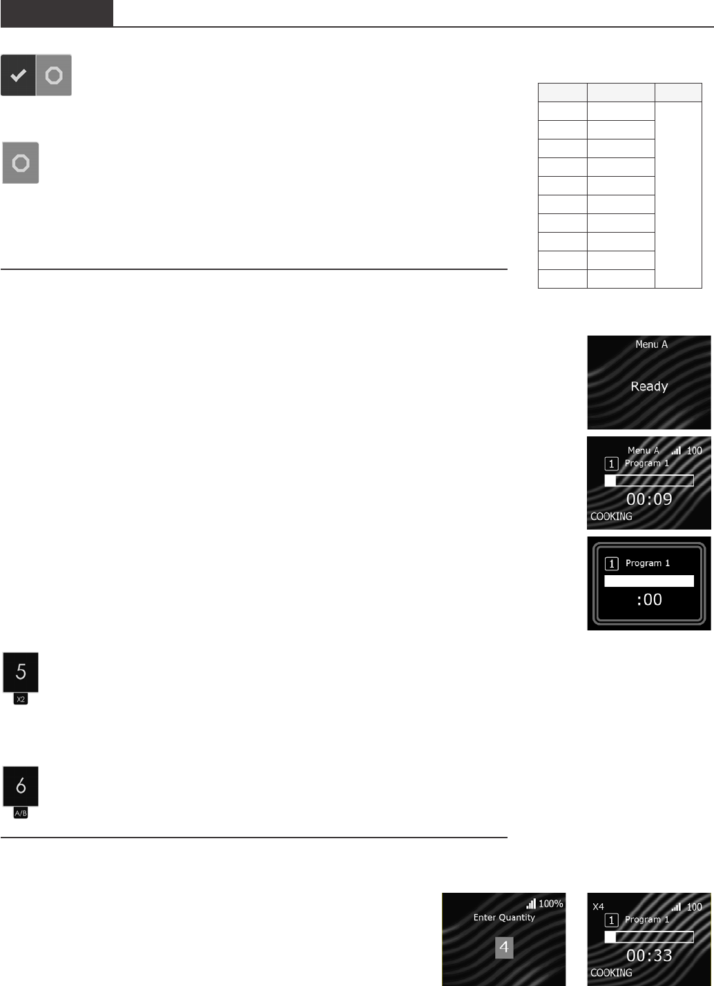 • Double Digit Keypad Cooking: press the two keypads, in order, of the double digit