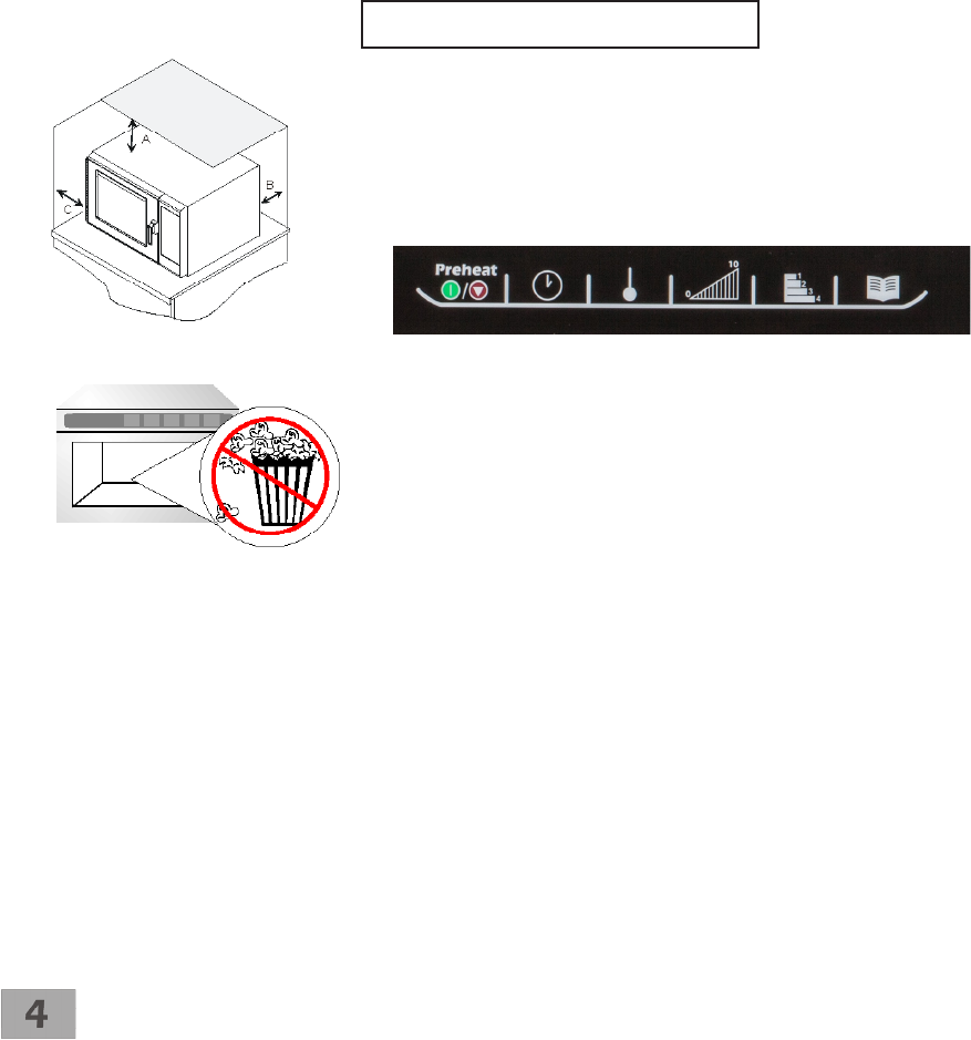 Proper air ow around oven cools electrical components. With restricted air ow, oven may not
