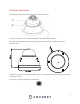 - 2 Device Overview The image below shows the structure of the camera (antenna not shown): The camera has 2 cables: 1 DC 12V power & 1 RJ45 Ethernet Network Input/Output port The images below shows the dimensions for the camera (antennas not shown). The measurements are in millimeters (mm): To access the reset button and to adjust the camera angle, use a Torx/Hex wrench to open the camera assembly by removing the 3 screws.