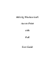 ABOUT THIS GUIDE Congratulations on your purchase of this IEEE 802.11g Wireless LAN Access Point. This manual helps to features the innovating wireless technology that can help you build a wireless network easily! This manual contains detailed instructions in operation of this product. Please keep this manual for future reference. With a WLAN (IEEE 802.11g) Access Point, a mobile computer can share data with another mobile computer in a wireless way.