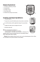 Display Explanations 1. 1. Systolic Assist Memory Indicator 2. Heartbeat Mark 2. 3. Diastolic Pressure 4. 4. Weak Battery Mark 5. Deflation Rate (During measurement) 5. 3. Installing and Replacing Batteries 1. Rotate the clip 90°. 2. Loosen the screw on the battery cover using a coin or screwdriver. 3. Install the batteries with the polarities facing in the correct direction. 4. Replace the battery cover and tighten the screw. 5. Rotate the clip back.