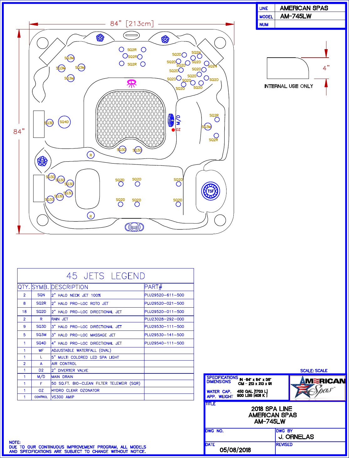 AQUA 6-person 45-Jet Premium Acrylic Lounger Spa Hot Tub with LED Waterfall and Cover