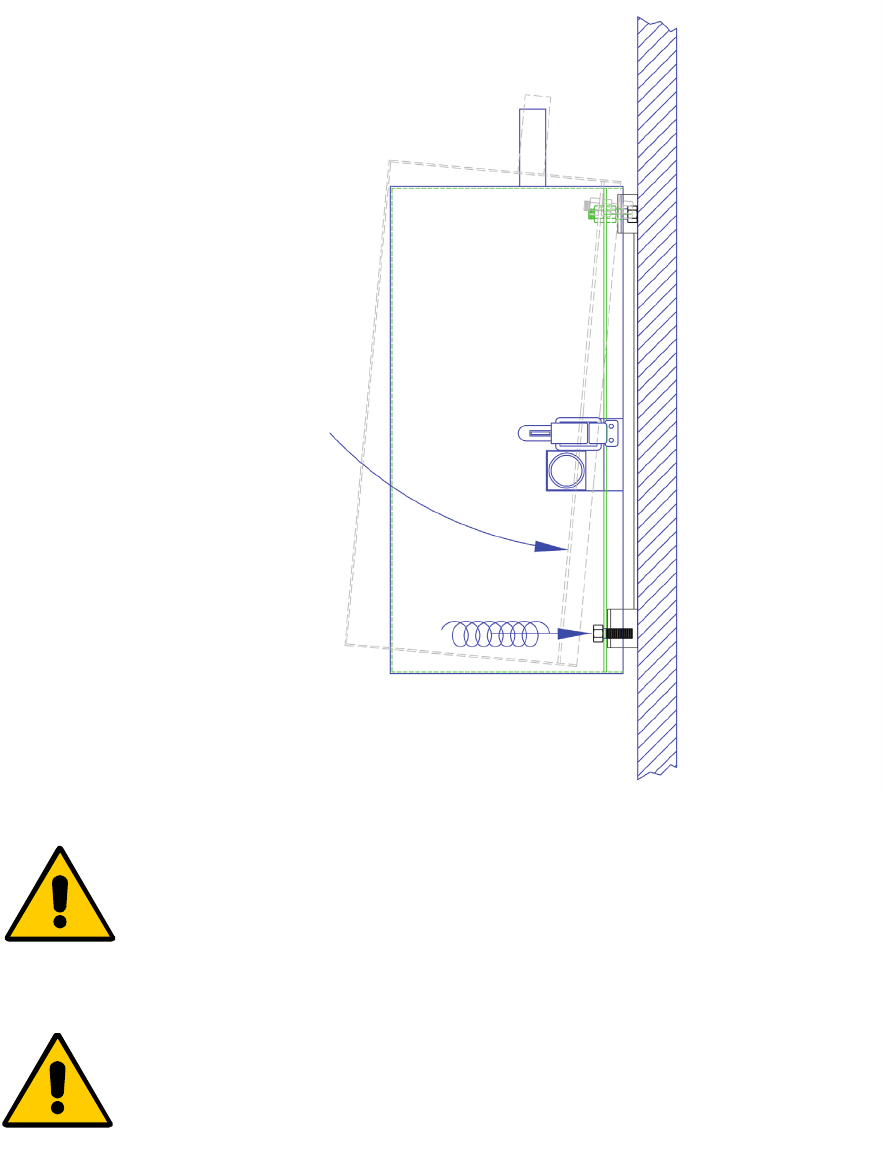 with the holes in the hanging bracket. Use 3/8” [9.525 mm] bolts to secure the cabinet to the bracket as shown
