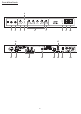Front & Rear Panel Descriptions 1. 2. 3. 4. 5. 6. 7. 8. 9. 10. 11. 12. 13. 14. 15. 16. 17. 18. 19. 20. 0 dB Input: Connect a passive instrument to this Input jack. –15 dB Input: Connect an active instrument to this Input jack. Gain Knob: Varies the intensity of the signal sent to the preamplifier. Ultra Hi: Enhances the amount of high frequency output. Ultra Lo: Enhances the amount of low-end output. EQ Knobs: Boost or cut the level at certain frequencies to enhance the sound.