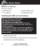 QUICK START GUIDE • • • • If there is already a battery inside, remove it. Slide the SIM card with the golden contacts facing down in the moulded SIM card holder. The SIM card must be located under the metal retaining bar to be in the correct position. Insert the battery. The golden contacts on the battery must face towards the upper left. Press lightly on the bottom end of the battery until it snaps into place.