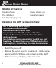 QUICK START GUIDE • Slide the SIM card with the golden contacts facing down in the moulded SIM card holder. The SIM card must be located under the metal retaining bar to be in the correct position. • Insert the battery. The golden contacts on the battery must face towards the bottom right. Press lightly on the top end of the battery until it snaps into place. • Replace the battery cover on the back of the phone and shift it upwards until it clicks into place.