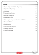 ÍNDICE ! Apresentação - Finalidade - Segurança 3 ! Aspectos de Segurança 4 ! Instalação ! ! Característica Técnica 7 ! Botão de Emergência 9 ! Instruções de Uso 10 ! Manutenção - Limpeza - Ocorrência de Defeitos 10 ! Esquema Elétrico 15 ! English version 16 ! Vista Explodida Máquina 22 ! Catálogo de Peças 23 ! Termo de Garantia 25 8 Pg.