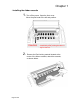 Chapter 1 • Setting up the Front tractor 1. Attach the paper rack holders (right & left) to the printer as shown below. Place the bottom of the holder into the chassis, rotate the holder up until you hear a click. 2. Insert the tractor connector (left side) to the mating connector on the front side of the printer. 3. Attach the tractor to the paper rack holders as shown below.