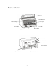 Part identification Top Cover Gap adjust lever Ribbon cartridge Control panel Pinch roller assembly Power switch Paper guide Paper support Print head Serial interface Ethernet interface USB interface AC Power inlet Paper select lever Paper Tractor assembly -7-