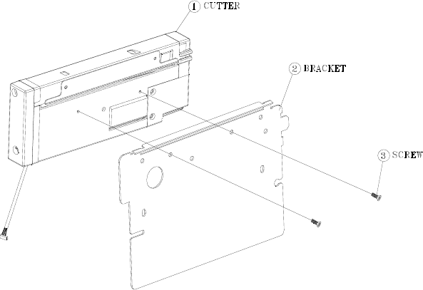 4. Secure the two screws for the cutter (1) and bracket (2).