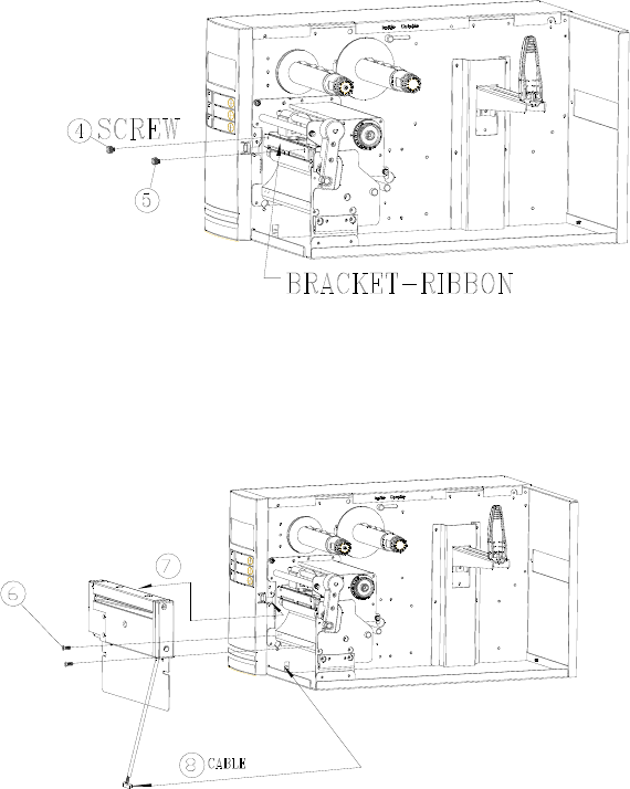 5. Loosen and remove the two screws (4) from bracket (5).