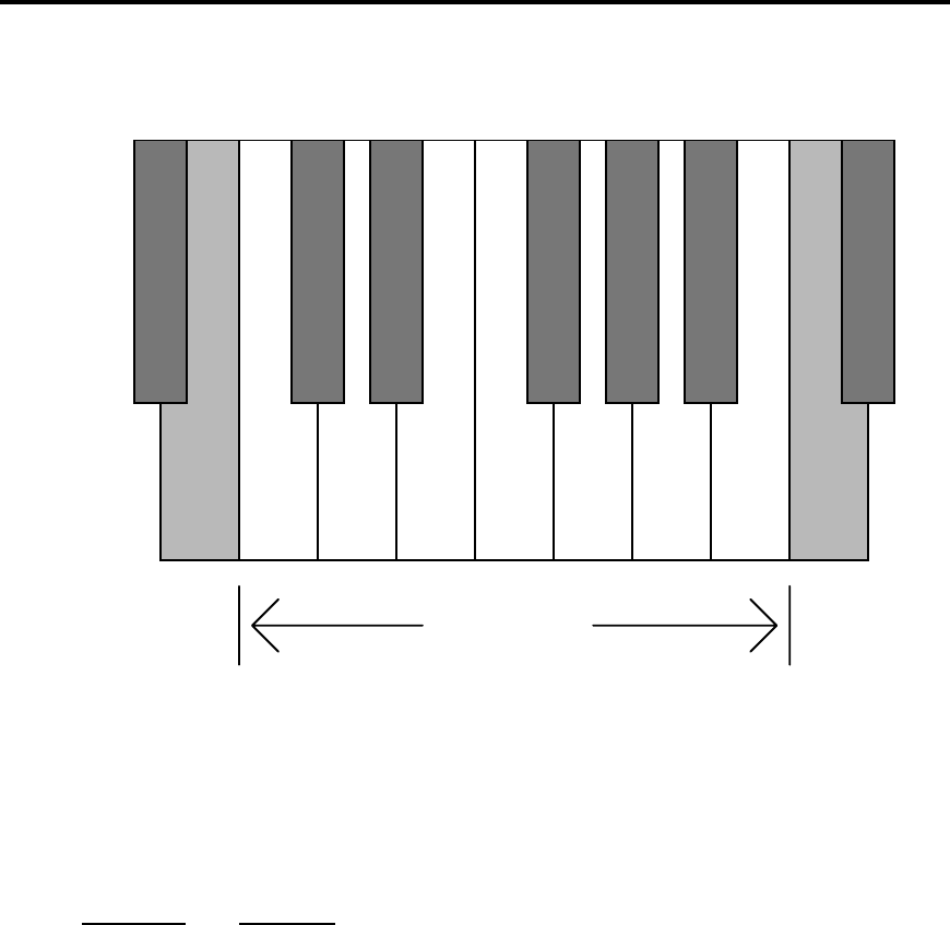 "B" at the high end. The following diagram shows one octave on a piano keyboard.