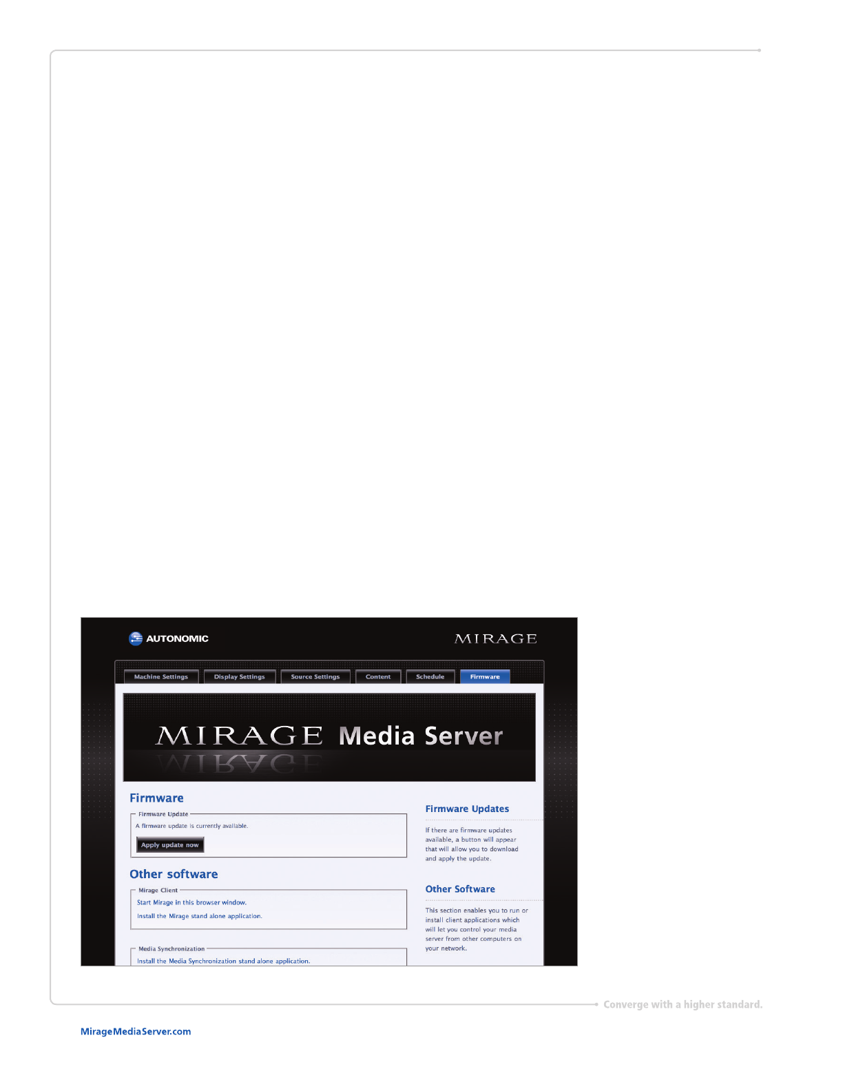The Mirage Media Server has a built-in web server that provides for remote conguration of
