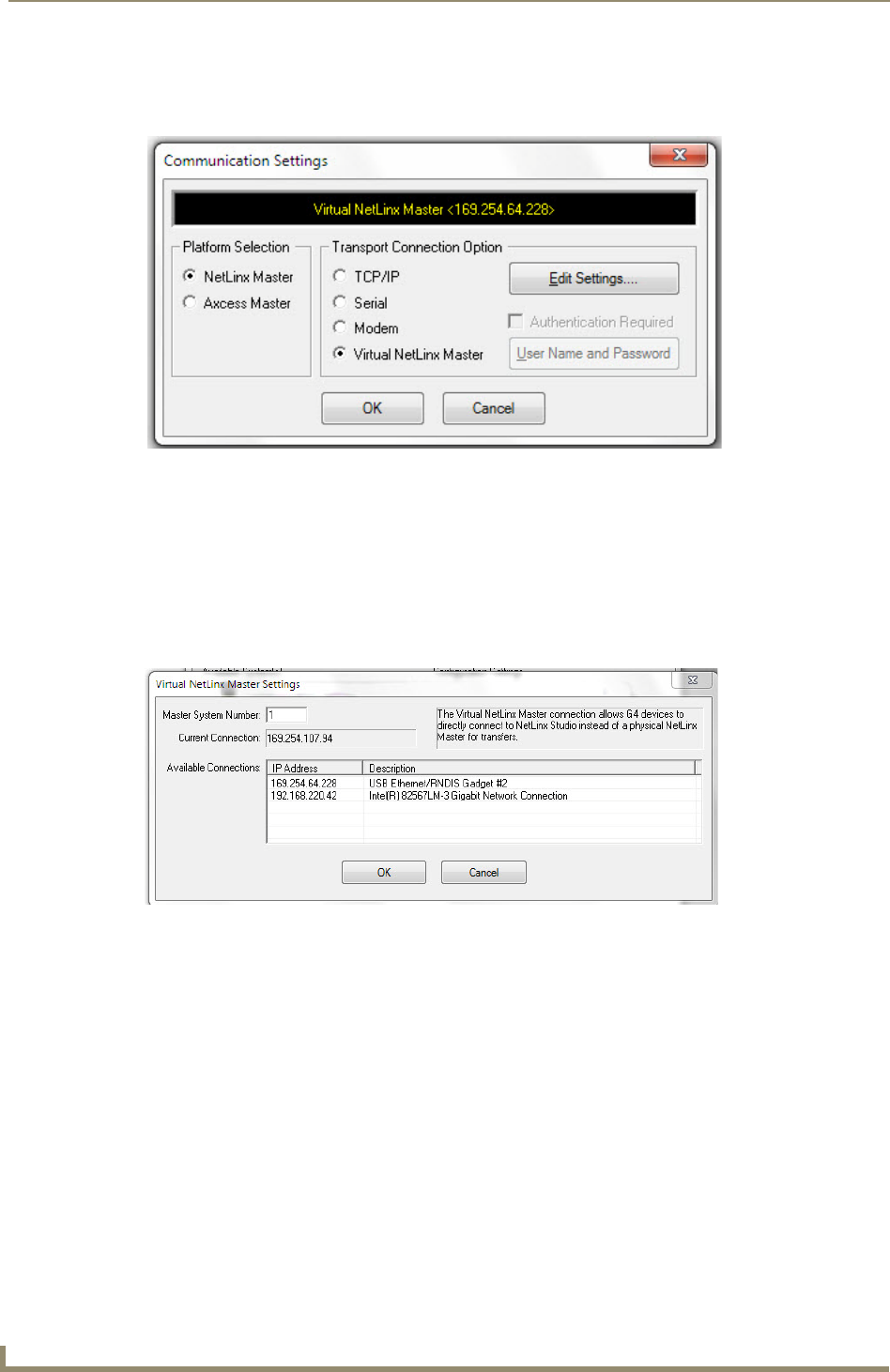 8. In the Virtual NetLinx Master Settings dialog box, click OK to close the box.