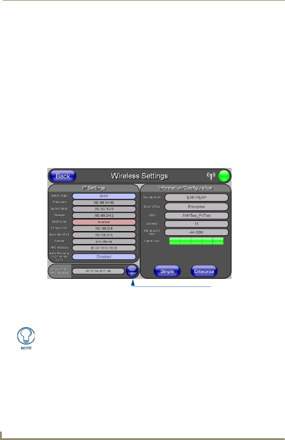 the Wireless Settings page. This section configures the communication parameters from the MVP panel