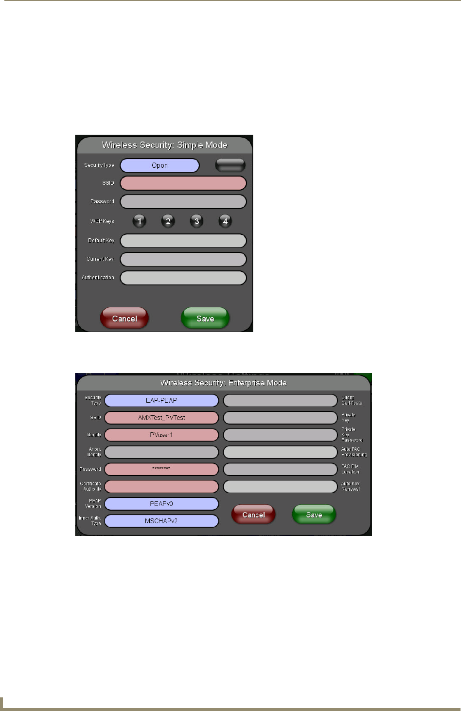 more secure options, such as for corporate environments, the Wireless Security: Enterprise Mode popup