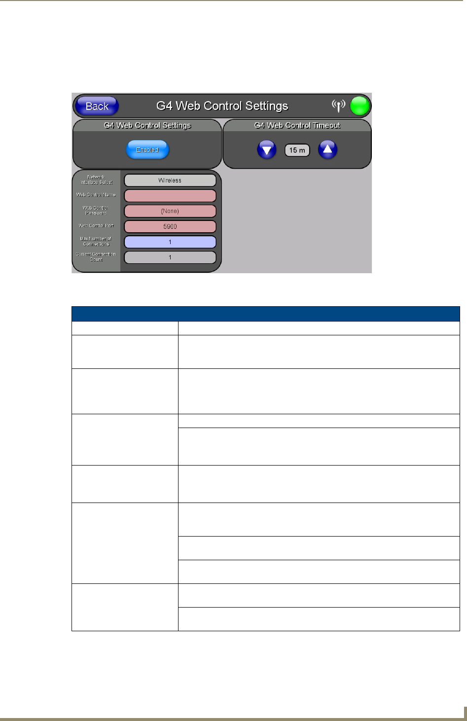 G4 Web Control Settings: Sets the IP communication values for the touch panel: