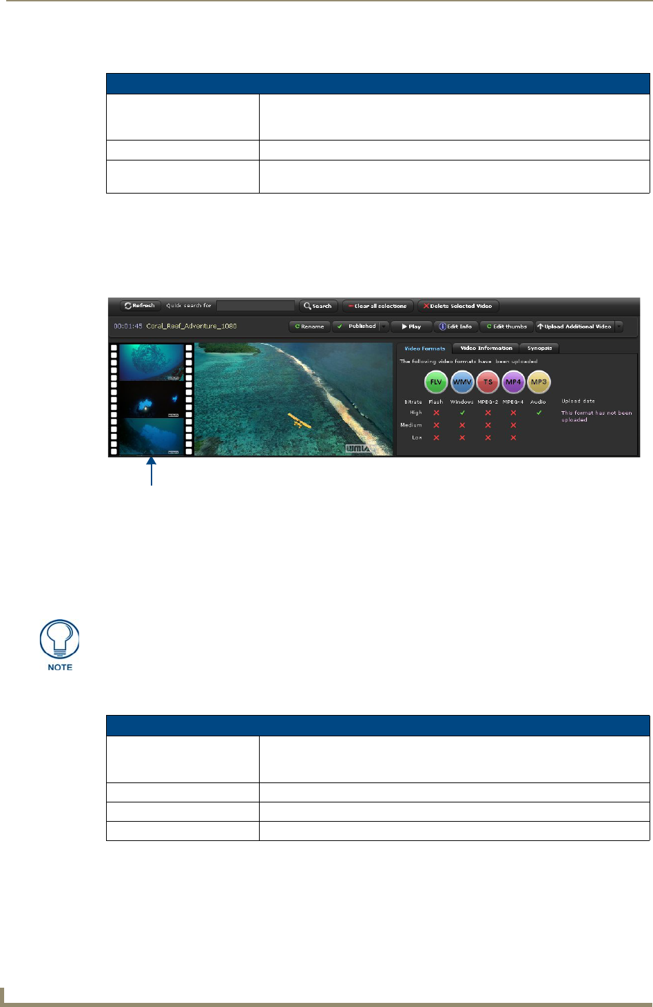 Video Formats This provides an visual representation of the currently uploaded file formats.