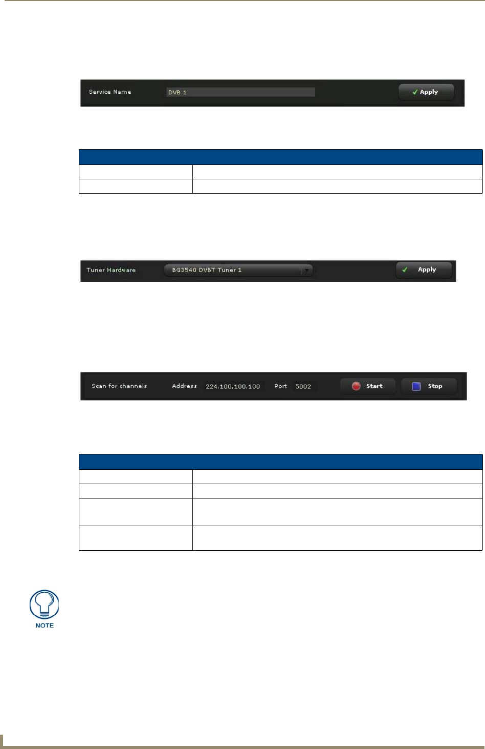 Use the Service Name field to enter a unique name for the DVB service. This name appears on the left pane of