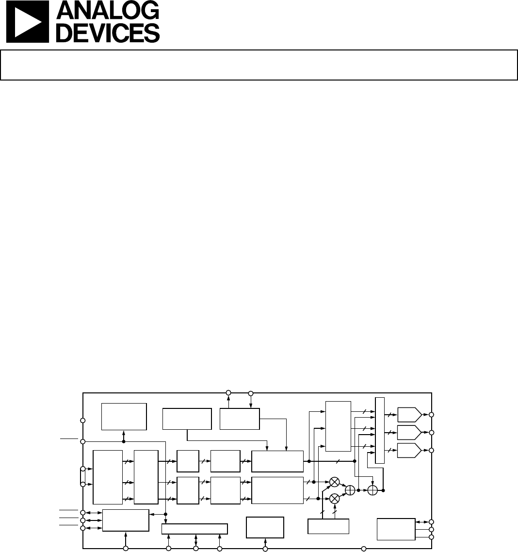 ADV7174/ADV7179 Table 7. Luminance Internal Filter Specifications Filter Type Low-Pass (NTSC) Low-Pass (PAL) Notch (NTSC) Notch (PATL) Extended (SSAF) CIF QCIF Filter Selection MR04 MR03 MR02 0 0 0 Pass-Band Ripple (dB) 3 dB Bandwidth (MHz) Stop-Band Cutoff (MHz) Stop-Band Attenuation (dB) 0.091 4.157 7.37 −56 0 0 1 0.15 4.74 7.96 −64 0 0 1 1 1 0 0 1 0 0.015 0.095 0.051 6.54 6.24 6.217 8.3 8.0 8.0 −68 −66 −61 1 1 0 1 1 0 0.018 Monotonic 3.0 1.5 7.06 7.15 −61 −50 Table 8.