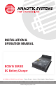 INSTALLATION & OPERATION MANUAL BCD615 SERIES DC Battery Charger An ISO9001 and AS9100 Registered Company Battery Chargers • Inverters • Power Supplies • Voltage Converters 8128 River Way, Delta B.C. V4G 1K5 Canada T. 604.946.9981 F. 604.946.9983 TF. 800.668.3884 (US/CANADA) www.analyticsystems.