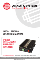 - INSTALLATION & OPERATION MANUAL IPSi365 INTELLIGENT PURE-SINE INVERTER An ISO9001 Registered Company Battery Chargers • Inverters • Power Supplies • Voltage Converters 8128 River Way, Delta B.C. V4G 1K5 Canada T. 604.946.9981 F. 604.946.9983 TF. 800.668.3884 (US/CANADA) www.AnalyticSystems.