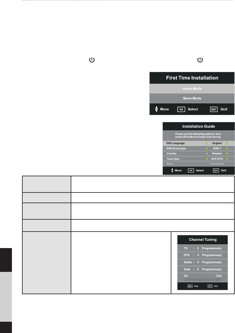 this stage, the TV switches to standby mode. The red LED indicator will illuminate on the front panel