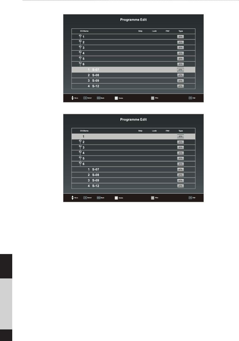 Press the FAV button to set the selected channel as one of the favorite programmes. Press the