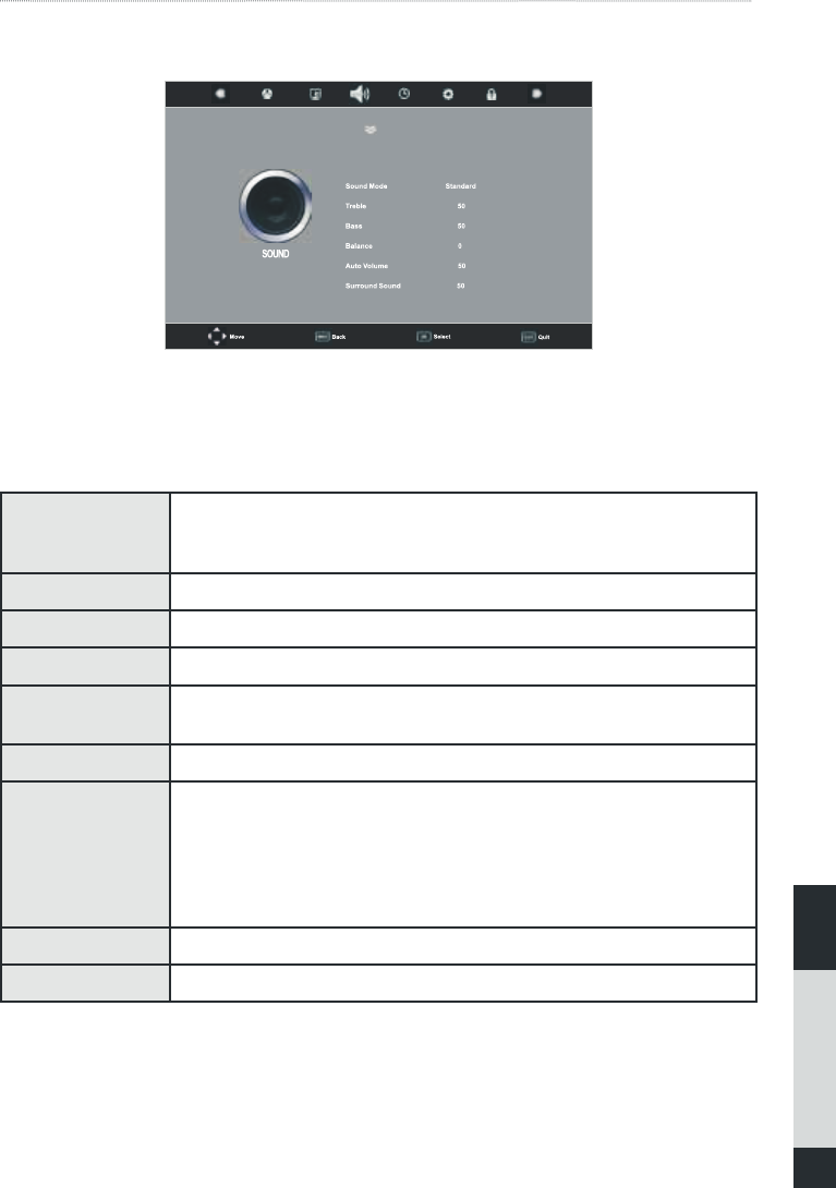 3. Press the buttons to select the option you want to adjust in SOUND menu.