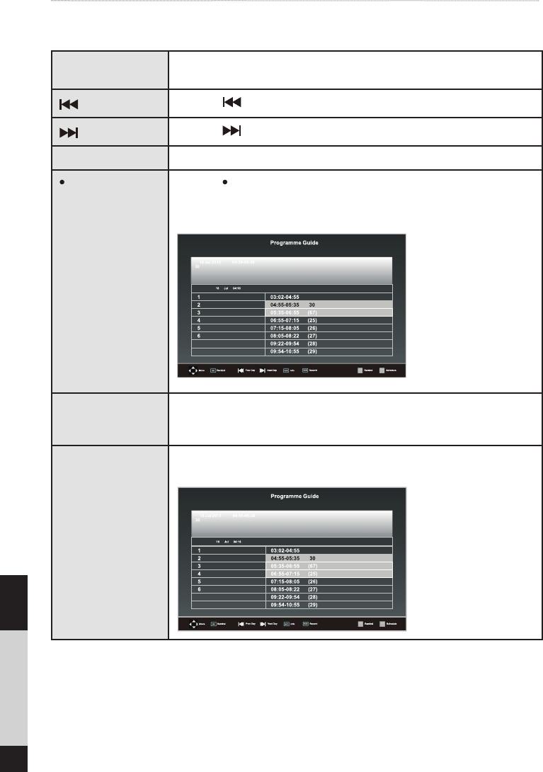 INFO Press to display detailed information of the selected programme (if available).