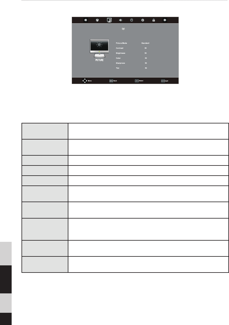 3. Tryck på-knapparna för att välja vilket alternativ du vill justera i BILD-menyn.