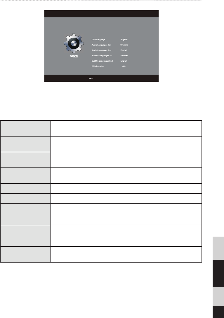 Språkinställningar Allows you to select your desired on-screen menu language.